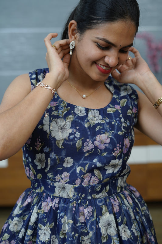 Midnight Bloom Sleevless Flared Dress - PF1013
